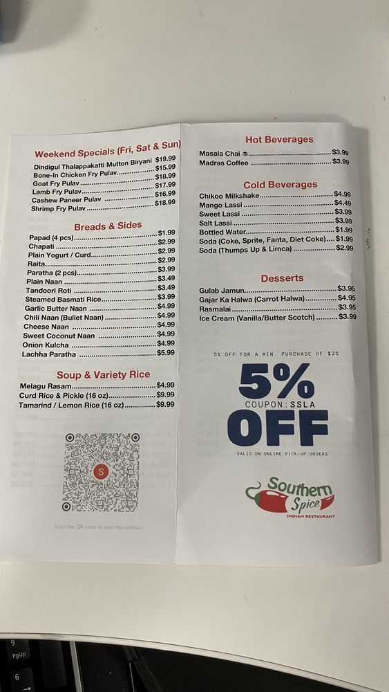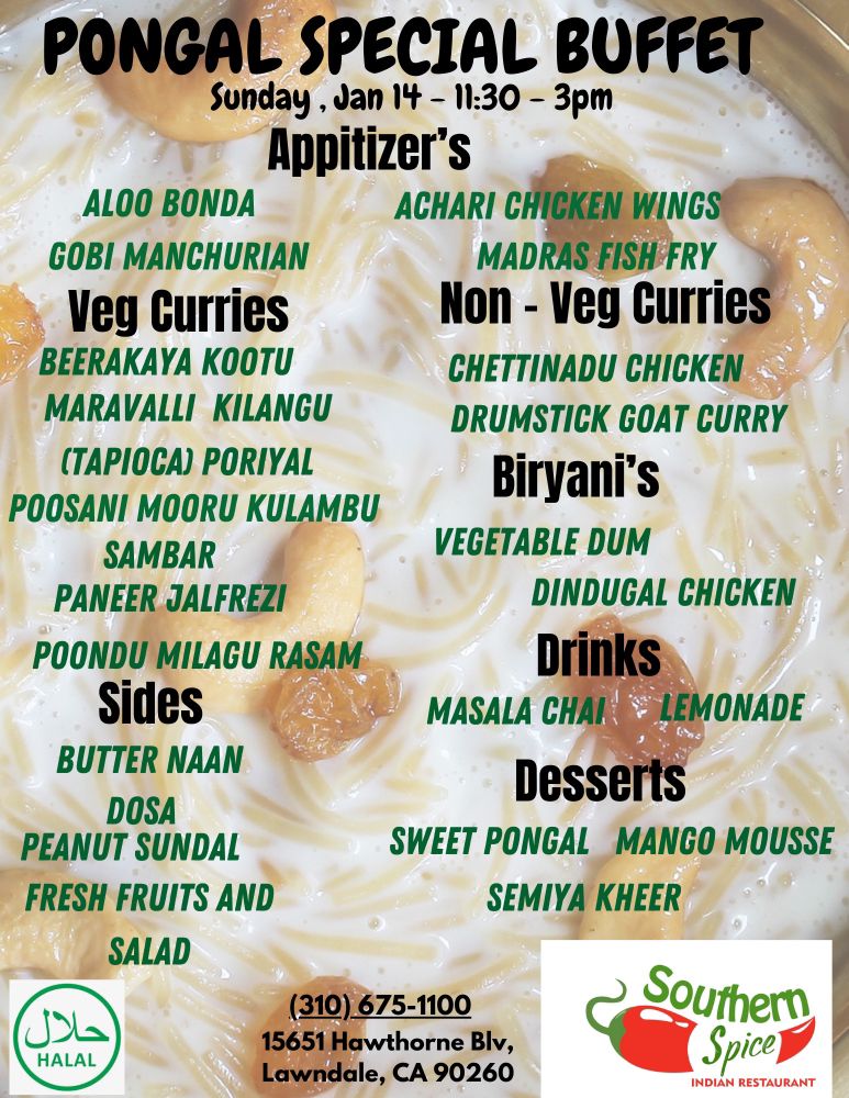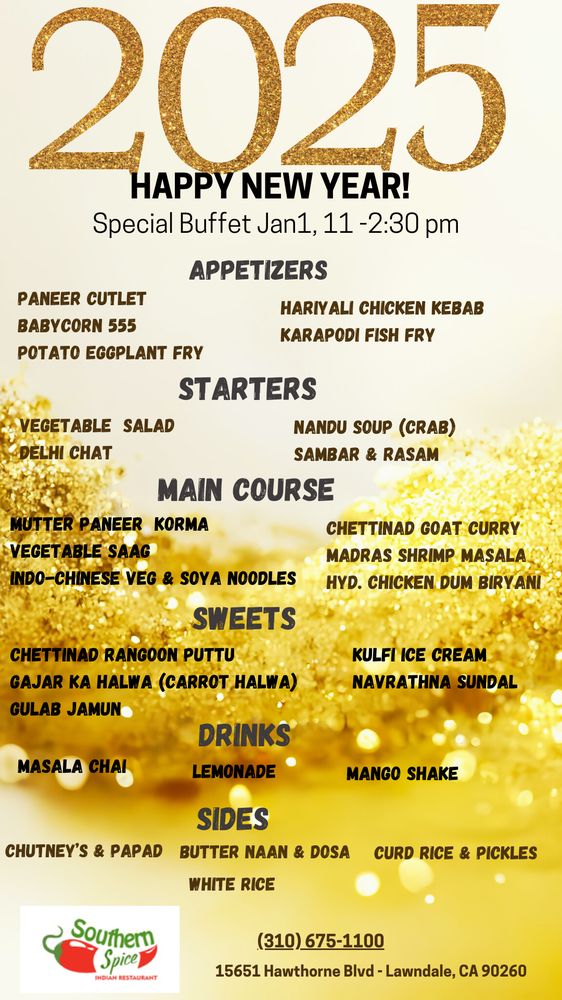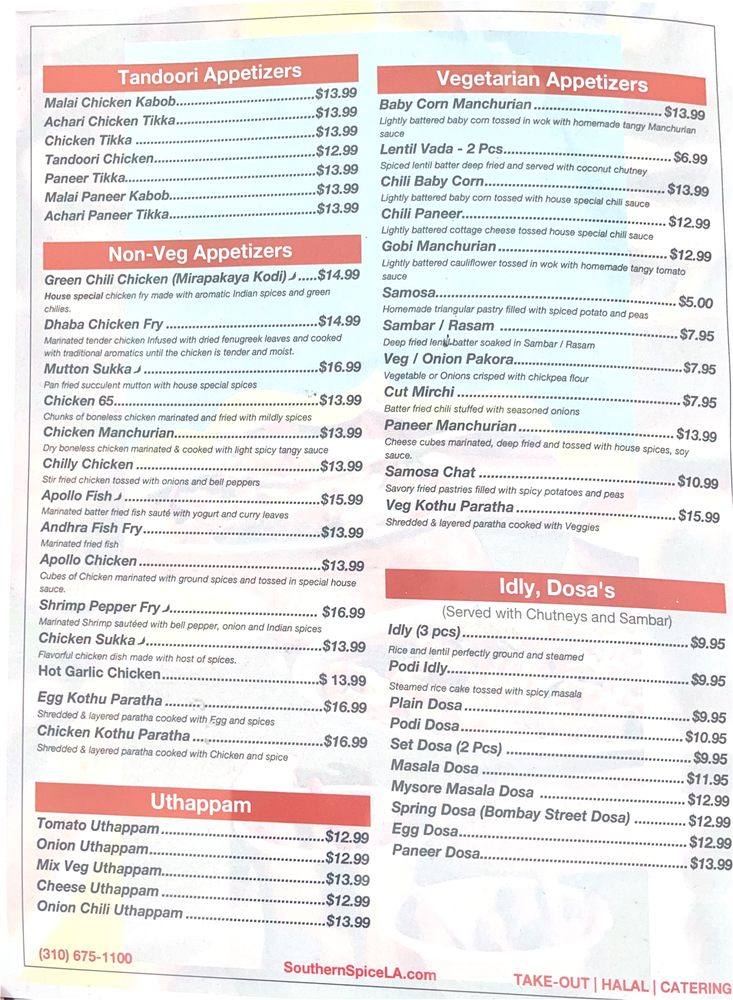 Located in Lawndale, Southern Spice Indian Restaurant offers a diverse menu of authentic Indian dishes with a focus on Halal buffets. The restaurant prides itself on taking reservations, offering delivery and takeout, and providing vegan and vegetarian options. Their Weekend Specials like BoneIn Chicken Fry Pulav and Cashew Paneer Pulav showcase unique flavors and textures. The Chicken Dum Biryani and Chef's Table items like Chicken Masala Dosa and Gobi 65 are popular choices among diners. Customers appreciate the ambience, friendly staff, and attention to detail in the dishes served. Whether you're looking for a casual meal or catering for a group, Southern Spice Indian Restaurant is a must-visit for delicious Indian cuisine in the South Bay area.